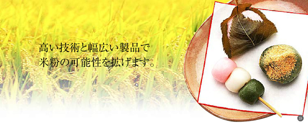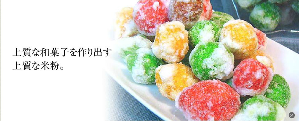 米粉は用途に応じた高品質な粉の製造が可能になり、最近では伝統的な和菓子以外に、パン、ケーキ、麺類、料理全般に使われ、美味しい材料として注目されています。是非ご相談お待ちいたしております。